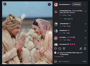 Rashmika’s wedding post reportedly crossed 18 million likes in less than 18 hours, setting social media abuzz. The massive response eclipsed the previous benchmark set by Kiara Advani’s wedding post, which had garnered 15.8 million likes. Once again, Rashmika proved that her fan following goes beyond borders.