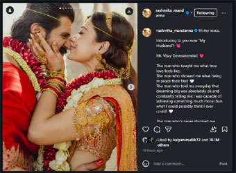 Rashmika’s wedding post reportedly crossed 18 million likes in less than 18 hours, setting social media abuzz. The massive response eclipsed the previous benchmark set by Kiara Advani’s wedding post, which had garnered 15.8 million likes. Once again, Rashmika proved that her fan following goes beyond borders.