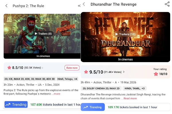 Dhurandhar 2 has stormed past it with authority, clocking a staggering 109K tickets in a single hour, setting a new all-time record in Indian cinema.