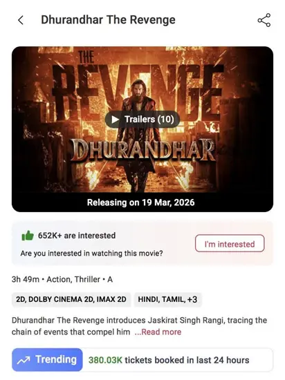 On BookMyShow, the film sold over 3.8 lakh tickets in the last 24 hours, its highest single-day figure so far. The overall sales on the platform have crossed 14 lakh tickets.