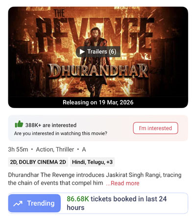 The most awaited trailer of Dhurandhar: The Revenge was released yesterday, and the premiere ticket sales opened across the nation simultaneously. Given the massive expectations surrounding the Ranveer Singh starrer, the response has been phenomenal.