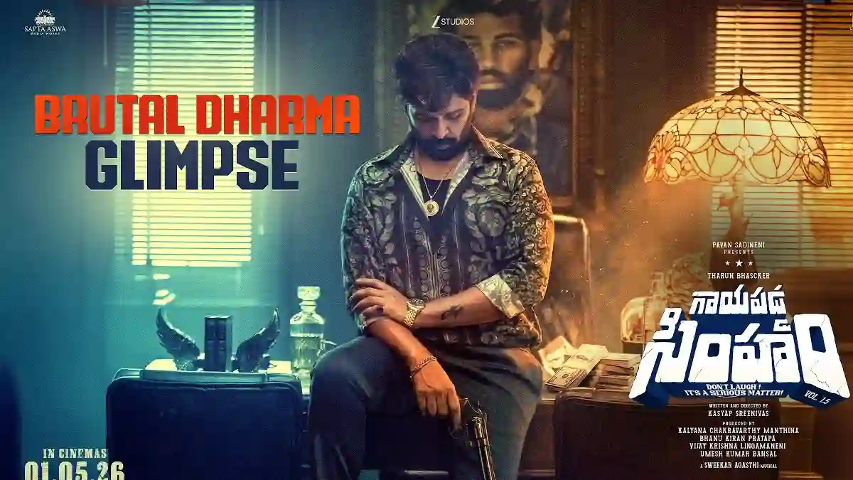 Tharun Bhascker’s quirky entertainer Gaayapadda Simham, directed by debutant Kasyap Sreenivas, is slated for release on May 1st. It is produced by Manthina, Bhanu Kiran Pratapa, Vijay Krishna Lingamaneni, and Umesh Bansal under Saptaswa Media Works, POV Stories, and Zee Studios. Faria Abdullah and Maanasa Choudhary play the female leads.