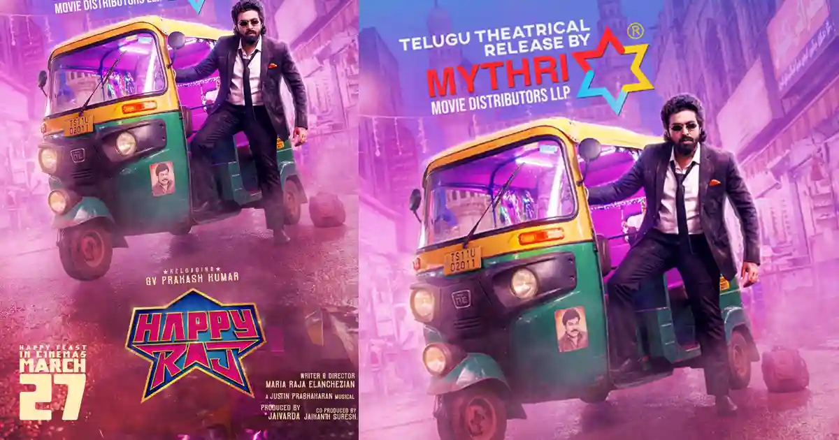 Happy Raj is billed as a love-and-family entertainer set in a refreshing backdrop. The film releases simultaneously in Tamil and Telugu on March 27th. With Mythri Movie Distributors LLP backing the GV Prakash starrer, we can expect a good release.