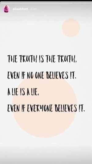 It looks like Alia has had enough of Kangana’s taunts. The RRR actress took to Instagram and posted a sly comment earlier today. “The truth is the truth, even if no one believes it. A lie is a lie even if everyone believes it,” Alia’s post read. Yesterday, Alia also posted, “Silence says a lot more than you think.” Only time will tell when and where this mudslinging will end.
