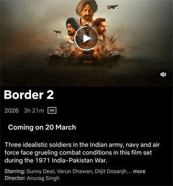 Varun Dhawan, Diljit Dosanjh, Ahan Shetty, Mona Singh, Sonam Bajwa, and others play key roles in this biggie, which is produced by T-Series Films and JP Films. The makers have also announced another film continuing the Border franchise.