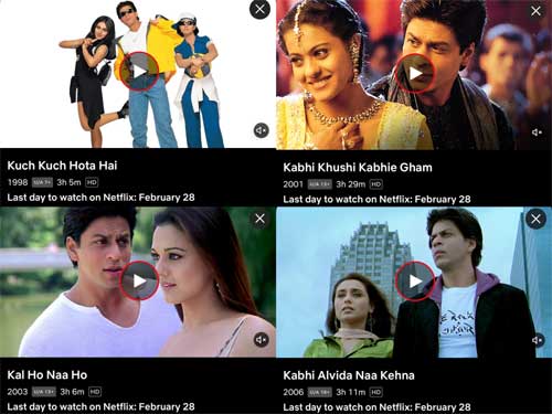 His most popular movies, Kuch Kuch Hota Hai (1998), Kabhi Khushi Kabhie Gham (2001), Kal Ho Naa Ho (2003), and Kabhi Alvida Naa Kehna (2006), are among those available for streaming, but here comes disappointing news for SRK fans.