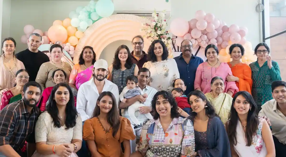 A few months ago, Superstar Mahesh Babu attended the birthday function of Ghattamaneni Sai Raghava’s children, and the pictures from this private event have now been officially shared by Raghava’s better half, Priyanka Ghattamaneni.