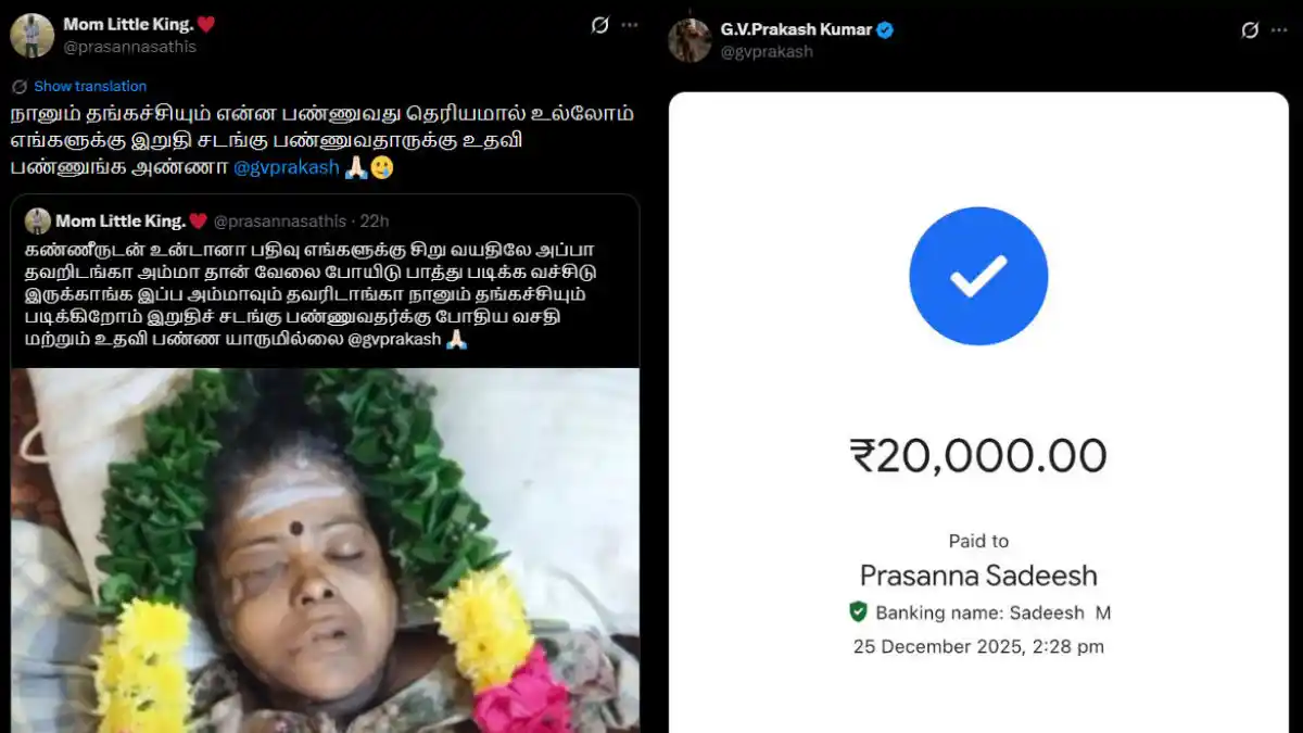 Moved by the appeal, GV Prakash Kumar reportedly transferred Rs. 20,000. Soon after, several users alerted him that the claim was fabricated and pointed out that the image had been taken from an unrelated source, thereby exposing the account.