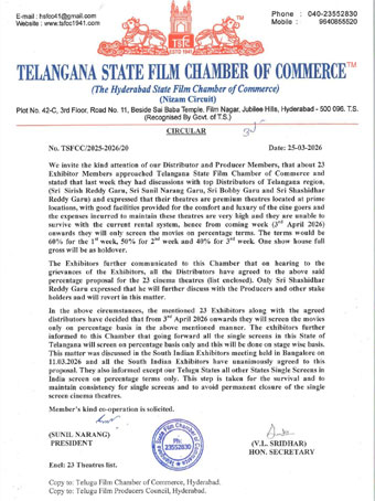 In an interesting move, a group of 23 single-screen theatres in Telangana will follow a new system for screening films starting April 3, 2026, as per a circular issued by the Telangana State Film Chamber of Commerce. These theatres have decided to move away from the rental system and adopt a percentage-based revenue model.