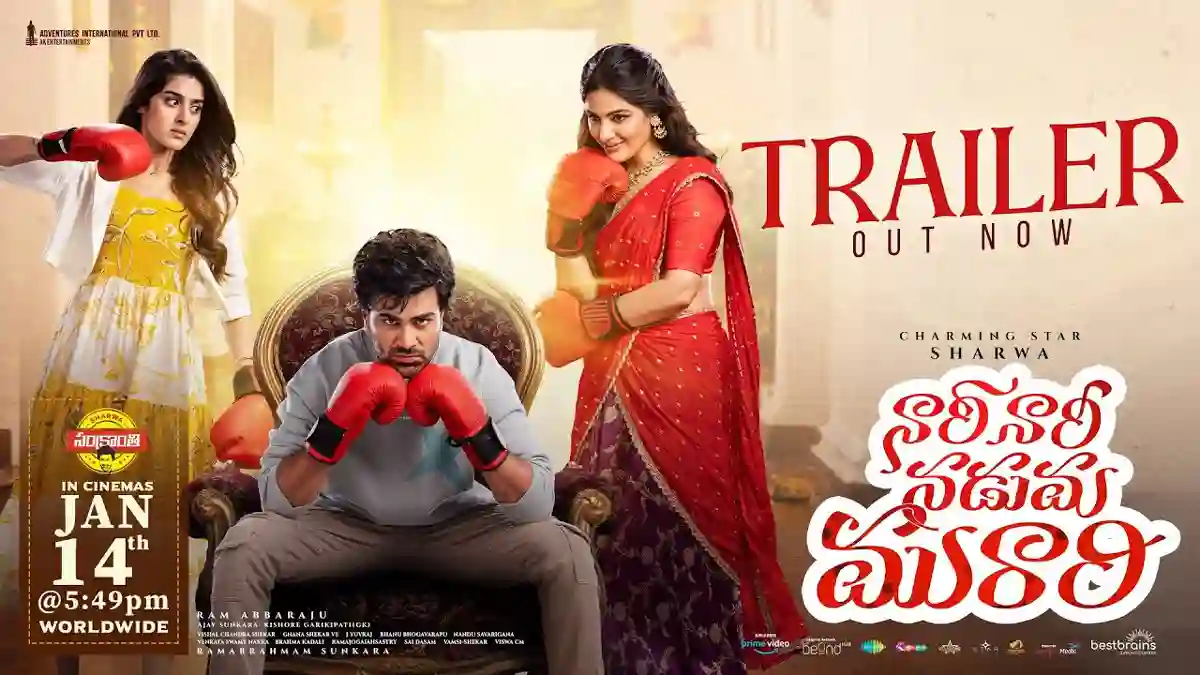 The makers released the trailer today, giving a glimpse into a comedy-driven narrative centered on relationships and unexpected twists. Samyuktha and Sakshi Vaidya play the female leads, and the film places Sharwanand in a situation where his past romance and present married life collide.