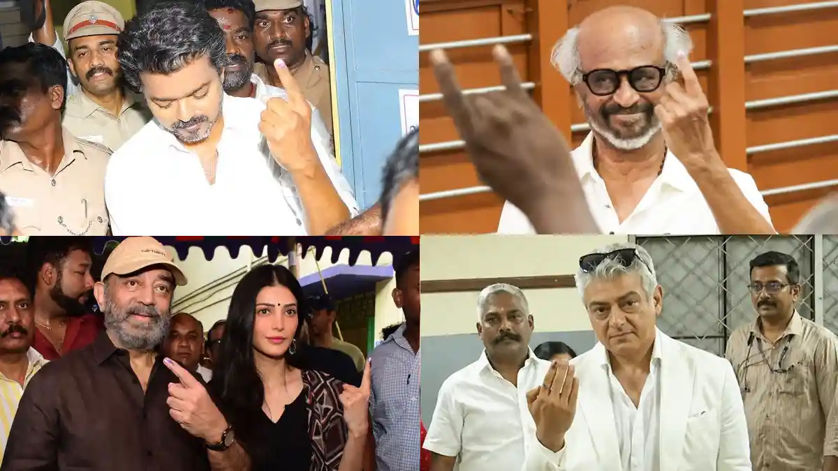 TVK Chief Thalapathy Vijay, Superstar Rajinikanth, Kamal Haasan, Ajith, Shruti Haasan, Dhanush, Anirudh, Trisha Krishnan, Vijay Sethupathi, Simraan, Chiyaan Vikram, Prabhu, Sivakarthikeyan, Sasikumar, Atlee, Sneha, RJ Balaji, Khusbhu Sundar, and other celebrities exercised their right to vote.