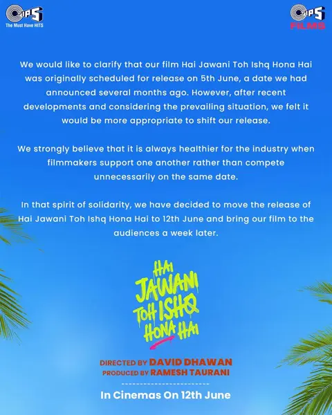 Toxic, starring Yash, was initially scheduled to arrive on March 19 but got postponed to June 4 due to the ongoing war in the Gulf nations. The sudden postponement of the gangster action drama has now forced the Bollywood biggie Hai Jawani Toh Ishq Hona Hai to move to a later date.