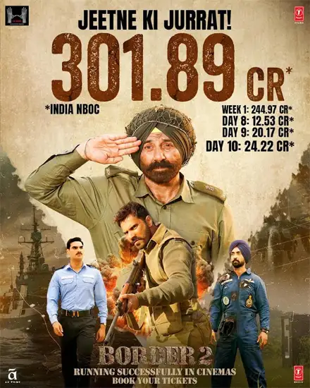 The Hindi period war drama Border 2, a sequel to the three-decade-old super hit Border, has achieved another significant box office milestone on its 10th day. Sunny Deol plays the main lead in this Anurag Singh-directed film.