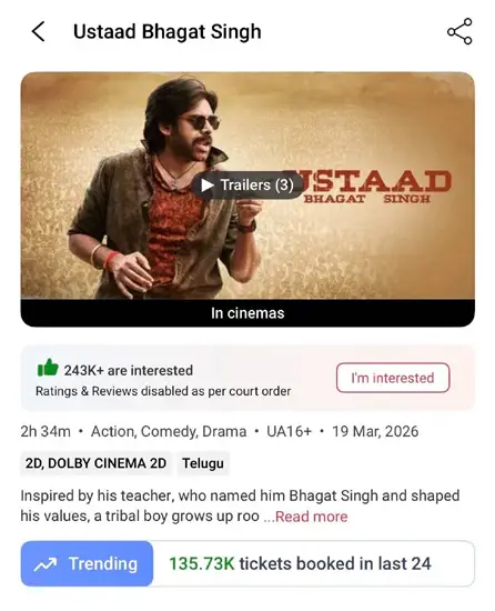 The Sunday performance of Ustaad Bhagat Singh is crucial, as Dhurandhar 2, which is on a rampage in the Telugu states, has emerged as strong competition.