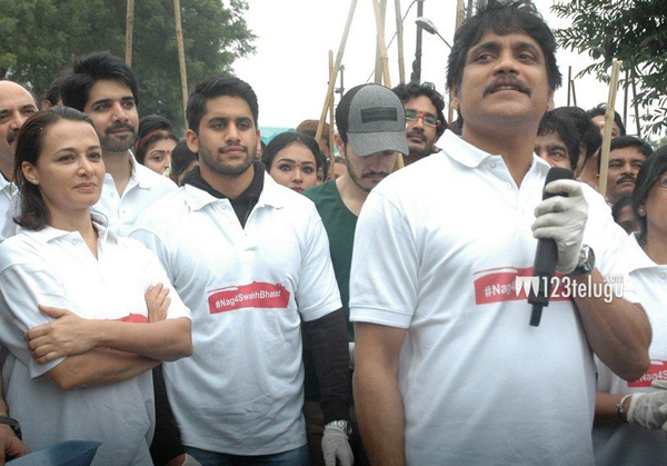 ప్రముఖ హీరో, కింగ్ నాగార్జునను భారత ప్రధాని నరేంద్ర మోడీ ప్రశంసించారు. క్లీన్ ఇండియా లక్ష్యంగా గాంధీ జయంతి సందర్భంగా మోడీ ‘స్వచ్చ భారత్ అభియాన్’ కార్యక్రమాన్ని ప్రారంభించారు. ప్రముఖ పారిశ్రామికవేత్త, రిలయన్స్ అధినేత అనిల్ అంబానీ ఇచ్చిన పిలుపు మేరకు అక్కినేని నాగార్జున & ఫ్యామిలీ స్వచ్ఛ భారత్ కార్యక్రమంలో పాల్గొన్నారు. నాగార్జునతో పాటు అమల, నాగచైతన్య, అఖిల్, సుశాంత్, అన్నపూర్ణ స్టూడియోస్ ఉద్యోగులు బంజారాహిల్స్ రోడ్ నంబర్-2లోని అన్నపూర్ణ స్టూడియో సమీపంలో రోడ్లను శుభ్రం చేశారు.
