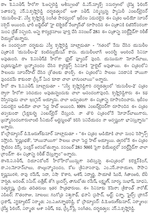 నవంబర్ 28న 500 థియేటర్స్ లో రిలీజ్ కానున్న ‘యమలీల 2’