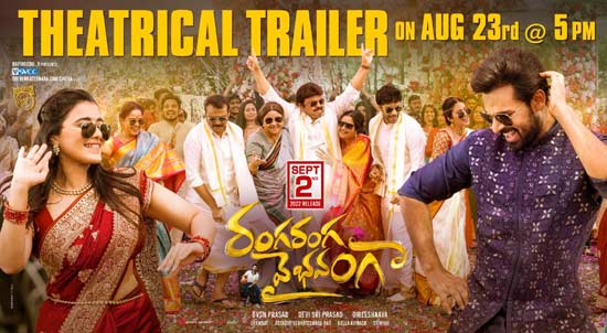 మెగా మేనల్లుడు వైష్ణవ్ తేజ్ హీరోగా కేతిక శర్మ హీరోయిన్ గా రాబోతున్న తాజా చిత్రం ‘రంగరంగ వైభవంగా’. ‘అర్జున్ రెడ్డి’ తమిళ వెర్షన్ ‘ఆదిత్యవర్మ’ చిత్రాన్ని తెరకెక్కించిన గిరీశయ్య ఈ సినిమాకు దర్శకత్వం వహించాడు. రీసెంట్ గా పోస్ట్ ప్రొడక్షన్ పనులను పూర్తి చేసుకున్న ఈ సినిమా గురించి ఒక ఇంట్రెస్టింగ్ అప్ డేట్ వచ్చింది. రేపు సాయంత్రం 5 గంటలకు ఈ సినిమా థియేట్రికల్ ట్రైలర్ను విడుదల చేయనున్నట్లు మేకర్స్ ప్రకటించారు. ఈ క్రమంలో ఓ సరికొత్త పోస్టర్ను విడుదల చేశారు. పోస్టర్ బాగుంది.