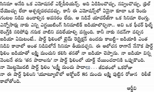 ‘లక్ష్మి మంచు పాదాలు’ షార్ట్ ఫిల్మ్ పై వర్మ వ్యాఖ్యలు