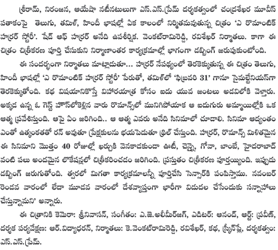 మూడు భాషల్లో ‘ఎ రొమాంటిక్ హారర్ స్టొరీ’