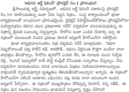 అభినవ ఆర్ట్స్ ఫిలిమ్స్ ప్రొడక్షన్ నెం 1 ప్రారంభం August 20, 2014 Join Us Follow Us Add as a preferred source on Google