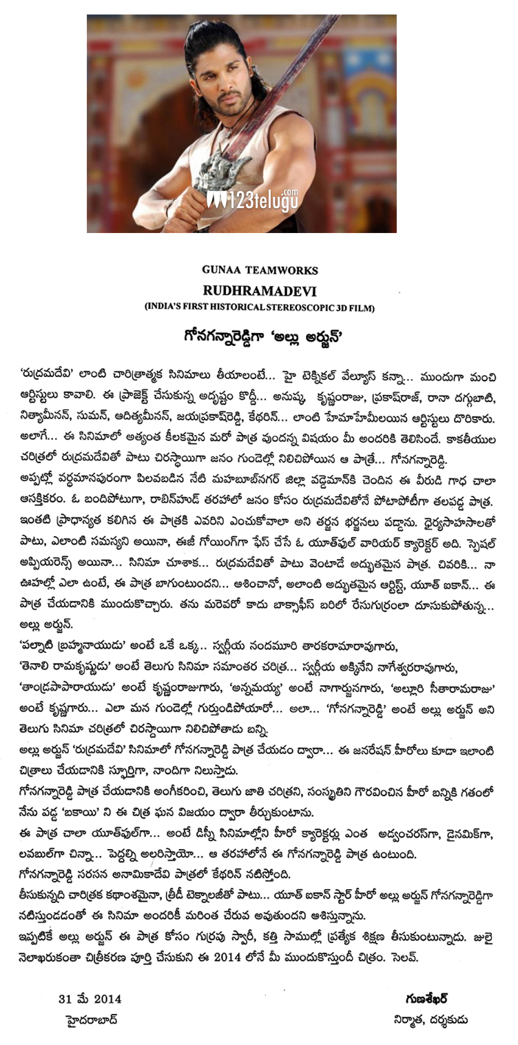 ఇక రుద్రమదేవిలో కనబడబోతున్న అల్లు అర్జున్