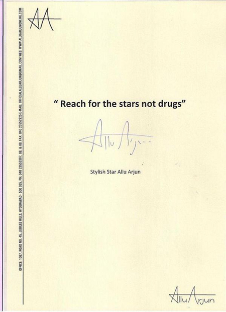 కోయంబత్తూర్ లో అమ్రిత స్కూల్ అఫ్ కమ్యూనికేషన్ నిర్వహిస్తున్న యాంటి డ్రగ్ కాంపెయిన్ కి తన మద్దతు ప్రకటించాడు. ‘రీచ్ ఫర్ ది స్టార్స్ నాట్ డ్రగ్స్’ అంటూ ప్రజలకు ఓ సందేశాన్ని పంపించాడు. తెలుగులోనే కాకుండా మలయాళ, తమిళ ప్రేక్షకులలో అల్లు అర్జున్ కు మంచి క్రేజ్ ఉంది. ఒక స్టార్ హీరో సందేశం ఇవ్వడం వలన యువతలో మార్పు రావడానికి ఆస్కారం ఉందని విశ్లేషకులు వ్యాఖ్యానించారు.