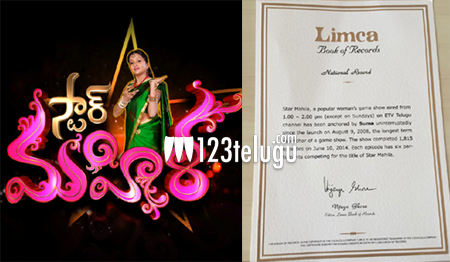 ప్రతిరోజు మధ్యాహ్నం ఒంటి గంట అయితే చాలు… తెలుగింట్లో మహిళలలు అందరూ టీవీలకు అతుక్కుపోతారు. ఈ టీవీలో సుమ వ్యాఖ్యాతగా వ్యవహరిస్తున్న ‘స్టార్ మహిళ’ కార్యక్రమం కోసం ఆసక్తిగా ఎదురుచూస్తారు. తెలుగింటి ఆడపడుచుల ఆదరణను సొంతం చేసుకున్న ఈ కార్యక్రమం ఇప్పటికే పలు రికార్డులు సృష్టించింది. తాజాగా లిమ్కా బుక్ రికార్డులకు ఎక్కింది.