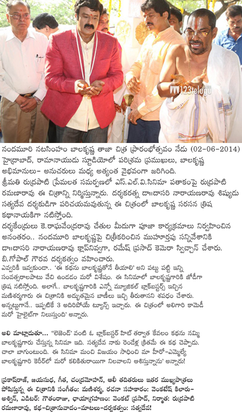 బాలకృష్ణ నూతన చిత్రం ప్రారంభం