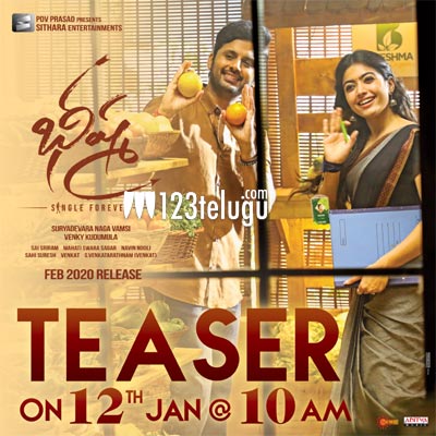 నితిన్ హీరోగా ‘ఛలో’ దర్శకుడు వెంకీ కుడుముల దర్శకత్వంలో రానున్న ‘భీష్మ’ చిత్రం నుండి టీజర్ రానుంది. జనవరి 12న ఉదయం 10 గంటలకు ఈ సినిమా టీజర్ విడుదల కానుందని చిత్రబృందం అధికారికంగా పోస్టర్ ను రిలీజ్ చేసింది. ఫిబ్రవరి 21న రిలీజ్ కానున్న ఈ సినిమా పోస్ట్ ప్రొడక్షన్ వర్క్ లో ఫుల్ బిజీగా ఉంది. నితిన్ తన పాత్రకు డబ్బింగ్ చెబుతున్నట్లు తెలుస్తోంది. ఈ చిత్రానికి ‘సింగిల్ ఫరెవర్’ అనేది ఉపశీర్షిక. ‘ఛలో’ మాదిరిగాగే ఈ చిత్రాన్ని కూడా వెంకీ ఎంటెర్టైనింగా మలచనున్నాడట.