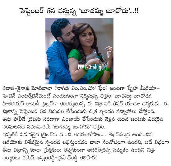 సెప్టెంబర్ 5న రానున్న బూచమ్మ బూచోడు