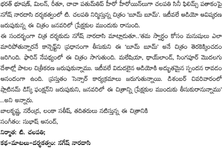 జనవరిలో విడుదల కానున్న ‘బూమ్ బూమ్’