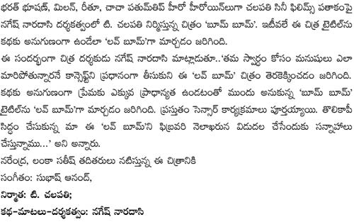 ‘లవ్ బూమ్’గా మారిన ‘బూమ్ బూమ్’