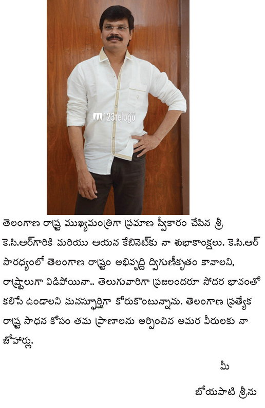 కేసీఅర్ కు శుభాకాంక్షలు తెలిపిన బోయపాటి శ్రీను