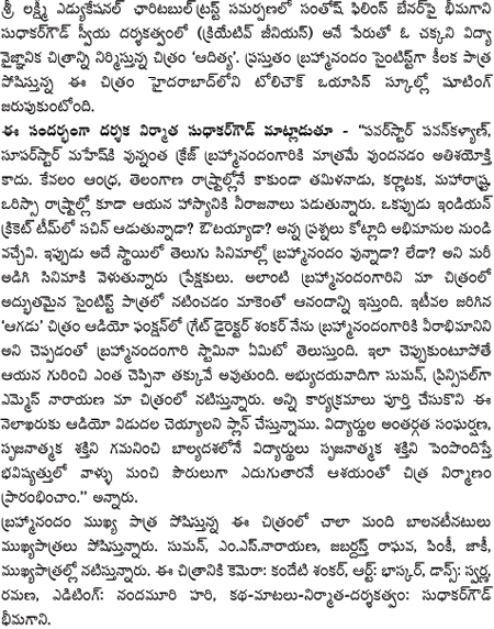 ‘ఆదిత్య’లో బ్రాహ్మి హాస్యనట విశ్వరూపం – దర్శకుడు సుధాకర్