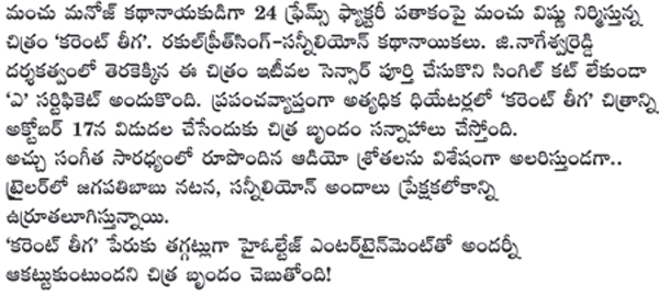 సెన్సార్ పూర్తి చేసుకున్న ‘కరెంట్ తీగ’