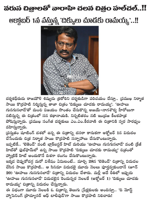 అక్టోబర్ 1న రానున్న ‘దిక్కులు చూడకు రామయ్య’