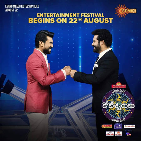 బుల్లితెర ప్రేక్షకులను అలరించడానికి సిద్దం అవుతుంది ఎవరు మీలో కోటీశ్వరులు. ఈ కార్యక్రమం కి జూనియర్ ఎన్టీఆర్ హోస్ట్ గా వ్యవహరిస్తున్నారు. ఈ కార్యక్రమం ఆగస్టు 22 వ తేదీ నుండి మొదలు కానుంది. ఈ ఆగస్ట్ 22 వ తేదీన మెగా పవర్ స్టార్ రామ్ చరణ్ గెస్ట్ గా రానున్నారు. ఇందుకు సంబంధించిన లేటెస్ట్ ప్రోమో ను యాజమాన్యం తాజాగా విడుదల చేయడం జరిగింది.