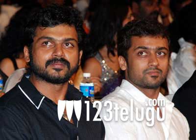 ఇదిలా ఉంటే ఈ టాలీవుడ్ స్టార్స్ కి సపోర్ట్ గా తమిళ చిత్ర పరిశ్రమ హీరోలు కూడా ముందుకు వచ్చి ఈ వేడుకలో పాల్గొననున్నారు. తెలుగు హీరోలతో సమానంగా క్రేజ్ ఉన్న సూర్య, కార్తీలు ఈ వేడుకకి హాజరు కానున్నారు. ఇప్పటికే మన చిత్ర మండలి వారు సూర్య, కార్తీని ఈ వేడుకకి రమ్మని అడగడం, వాళ్ళు తప్పకుండా వస్తాము అని మాటివ్వడమే కాకుండా, పెర్ఫార్మన్స్ చెయ్యడానికి కూడా వారు సముఖత చూపినట్లు సమాచారం. దీన్నిబట్టి ‘వీ లవ్ వైజాగ్’ వేడుకలో అన్నదమ్ములైన సూర్య – కార్తిల లైవ్ పెర్ఫార్మన్స్ చూడవచ్చు.
