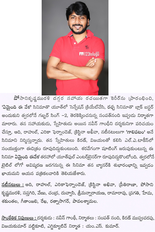 శరవేగంగా జరుగుతున్న ‘గాలిపటం’ షూటింగ్
