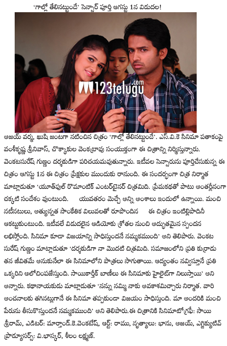 ఆగష్టు 1న విడుదలకానున్న ‘గాల్లో తేలినట్టుందే’ July 23, 2014 Join Us Follow Us Add as a preferred source on Google