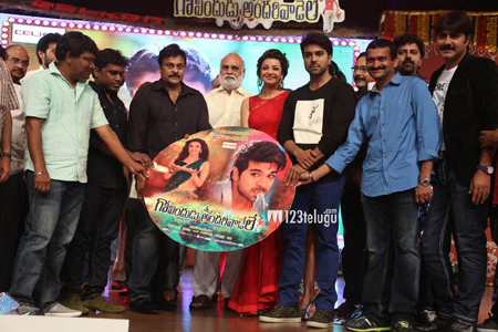 మెగా పవర్ స్టార్ రామ్ చరణ్, క్రియేటివ్ డైరెక్టర్ కృష్ణవంశి కలయికలో రూపొందిన ‘గోవిందుడు అందరివాడేలే’ ఆడియో సోమవారం సాయంత్రం హైదరాబాద్ లో శిల్పకళా వేదికలో కన్నుల పండుగగా జరిగింది. ఈ కార్యక్రమానికి చిరంజీవి దంపతులతో పాటు రామ్ చరణ్ దంపతులు ప్రధాన ఆకర్షణగా నిలిచారు. అల్లు అరవింద్, శ్యాం ప్రసాద్ రెడ్డి, డివివి దానయ్య తదితర ప్రముఖులు, మూవీ యూనిట్ సభ్యులు హాజరయ్యారు.