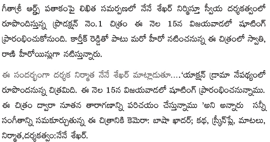 ఈ నెల 15న గీతశ్రీ ఆర్ట్ ప్రొడక్షన్ కొత్త మూవీ ప్రారంభం