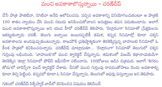 మంచి అవకాశాలొస్తున్నాయి – చరణ్ దీప్