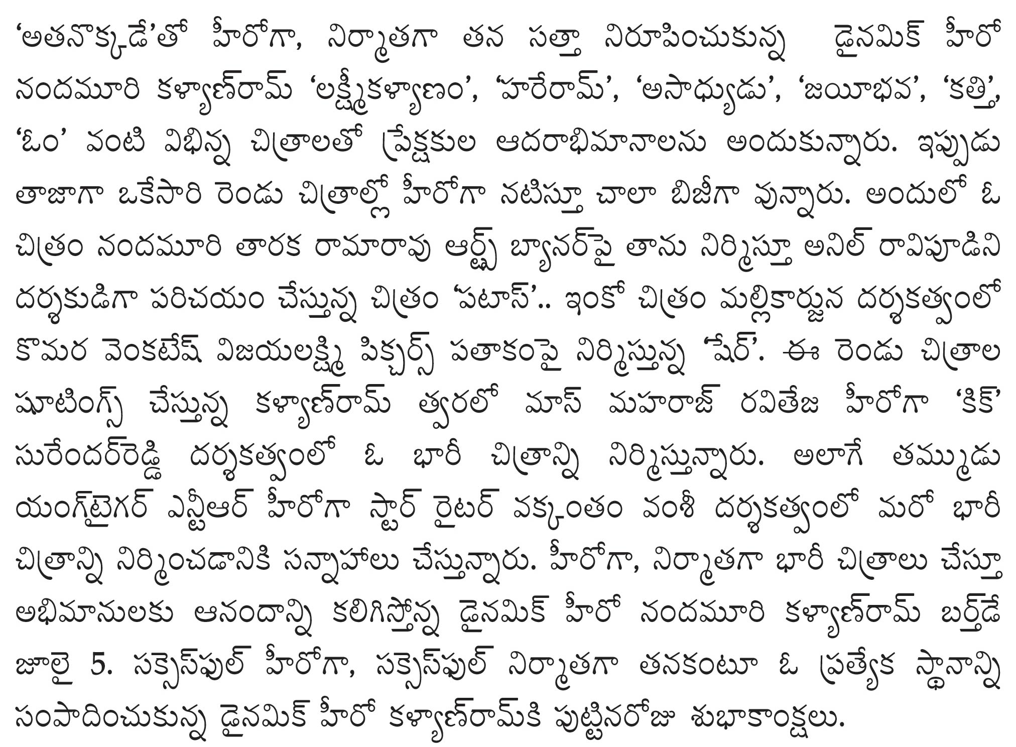 డైనమిక్ హీరో కళ్యాణ్ రామ్ కి జన్మదిన శుభకాంక్షలు