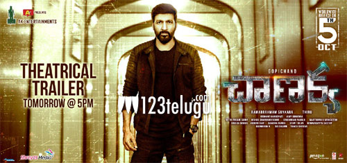యాక్షన్ హీరో గోపీచంద్ హీరోగా తమిళ దర్శకుడు తిరు దర్శకత్వంలో వస్తోన్న యాక్షన్ స్పై థ్రిల్లర్ చాణక్య. అయితే తాజాగా ఈ సినిమా థియేట్రికల్ ట్రైలర్ రిలీజ్ డేట్ ను అండ్ టైంను ఫిక్స్ చేసుకుంది. రేపు సాయంత్రం ఐదు గంటలకు ట్రైలర్ విడుదల కానుందని చిత్రబృందం పోస్టర్ ద్వారా అధికారికంగా ప్రకటించింది. ఇక ఇటీవలే రిలీజ్ అయిన ఈ సినిమా టీజర్ నెటిజన్లను బాగా ఆకట్టుకుంది. మొత్తానికి టీజర్ సినిమా పై అంచనాలను పెంచింది. మరి ట్రైలర్ ఎలా ఉంటుందో చూడాలి.