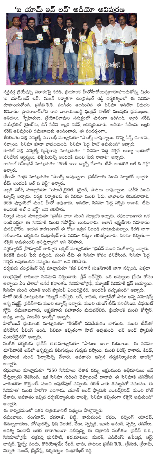 ఐ యామ్ ఇన్ లవ్ ఆడియో విడుదల విశేషాలు