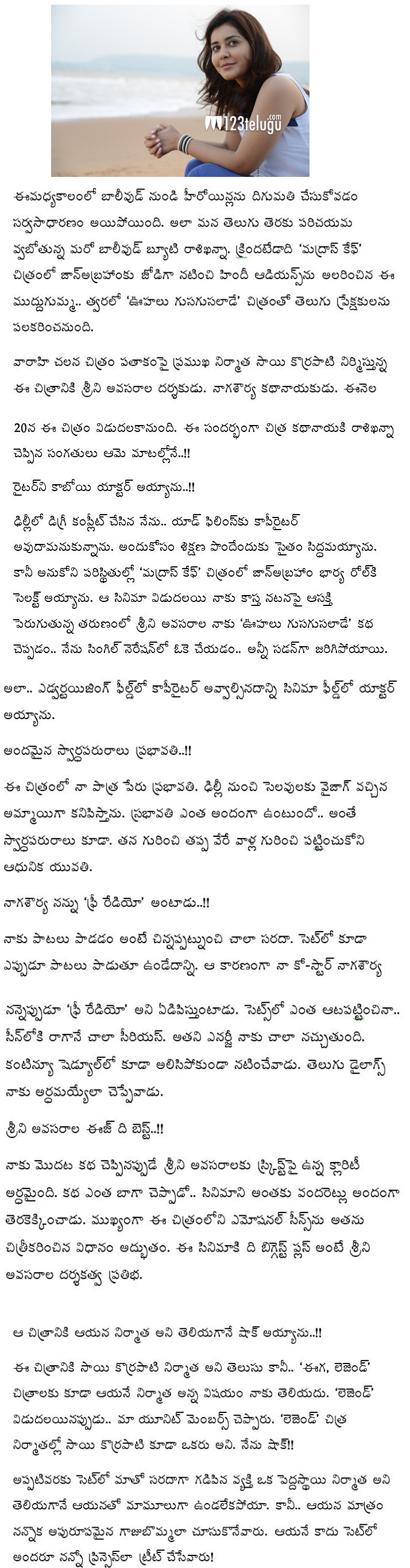 ఇంటర్వ్యూ : రాశి ఖన్నా – అందరూ నన్నొక ప్రిన్సెస్ లా చూసుకున్నారు.!