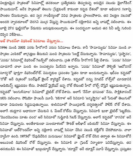 ఇంటర్వ్యూ : సాయి కుమార్ (బర్త్ డే స్పెషల్)