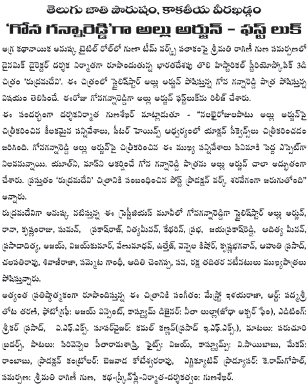 కాకతీయ వీరఖడ్గం గోన గన్నారెడ్డిగా అల్లు అర్జున్..!