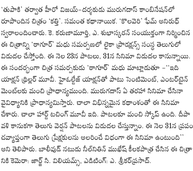 ఈ నెల 23న విడుదలకానున్న ‘కత్తి’ పాటలు